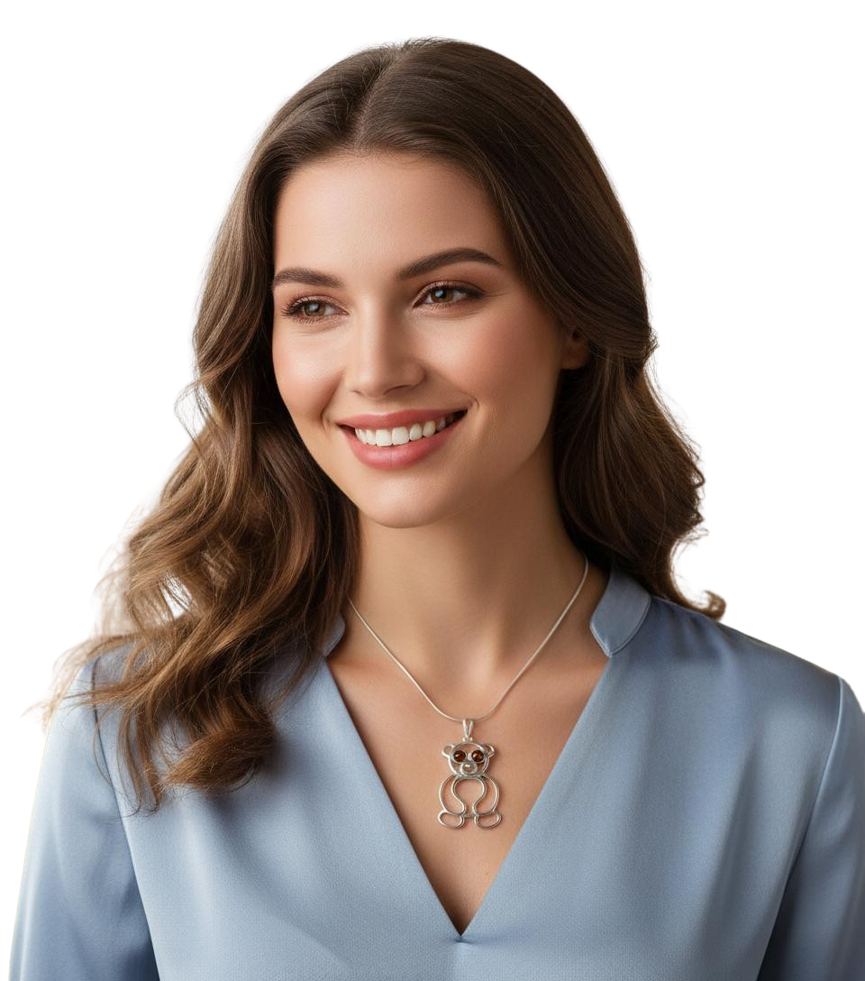 Cudny Srebrny Wisiorek Miś z Bursztynami