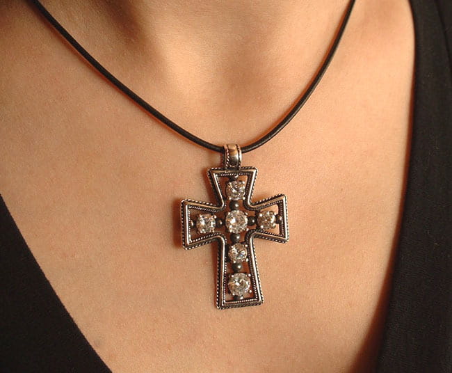 Srebrny Oksydowany Krzyż z Cyrkoniami