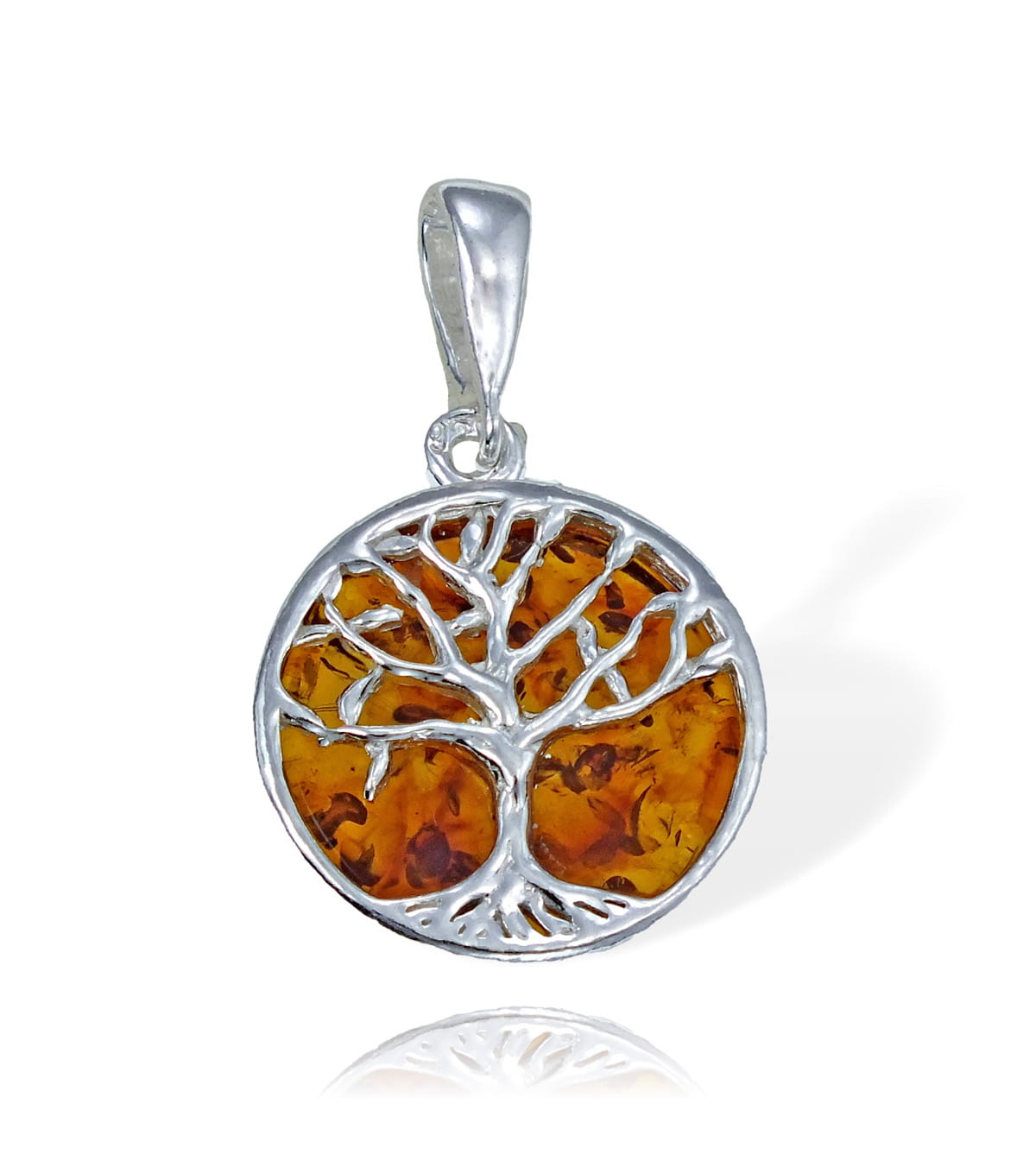 Cudny Srebrny Wisiorek Drzewo Drzewko z Bursztynem