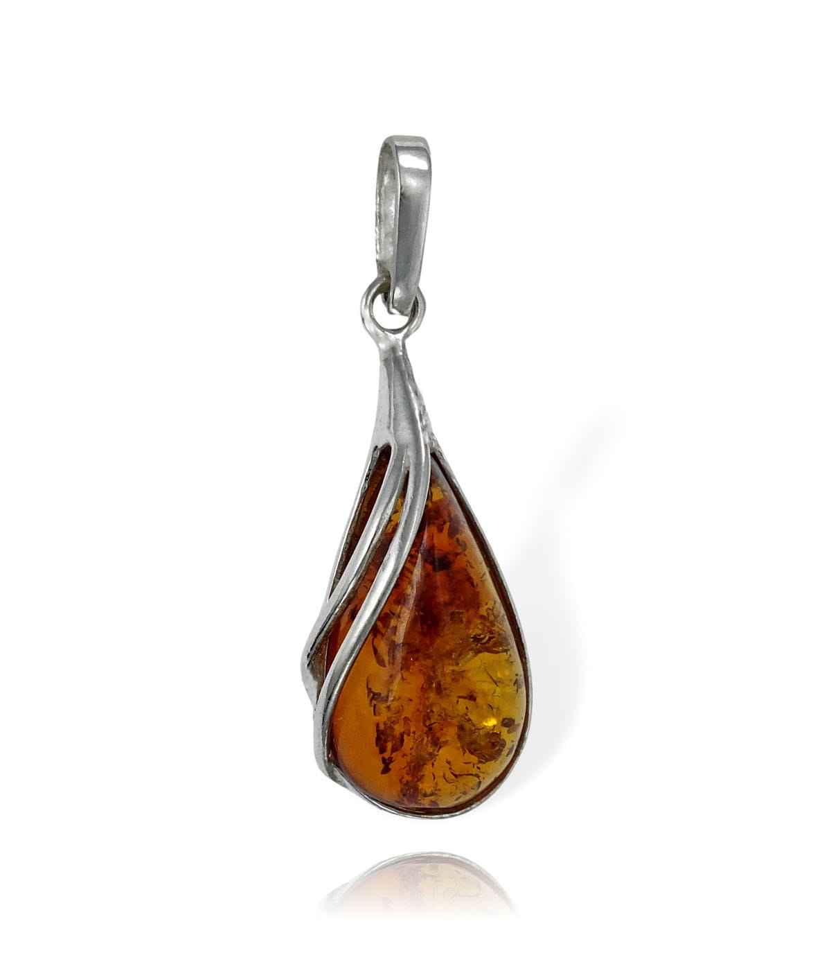 Srebrny Fantazyjny Oksydowany Wisiorek z Bursztynem z Bursztynami