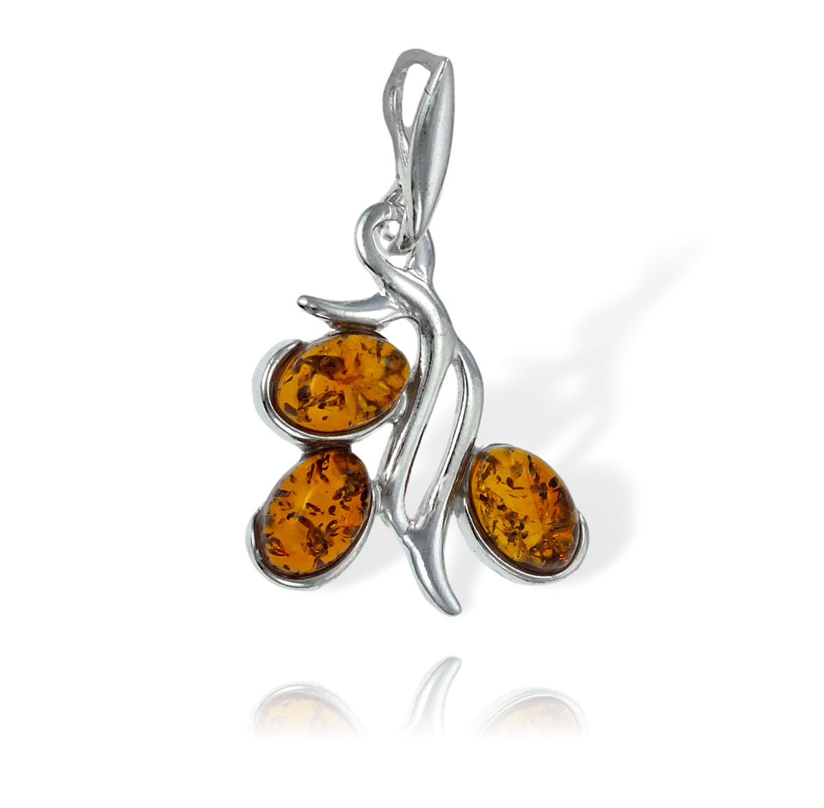 Srebrny Piękny Wisiorek Ażurowy z Bursztynami