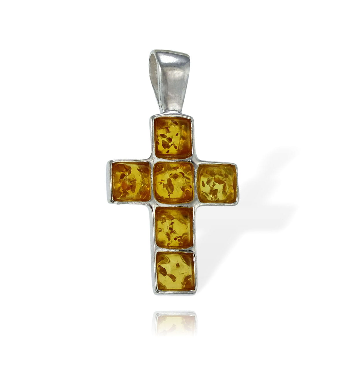 Srebrny Piękny Wisiorek Krzyż Krzyżyk z Bursztynem z Bursztynami