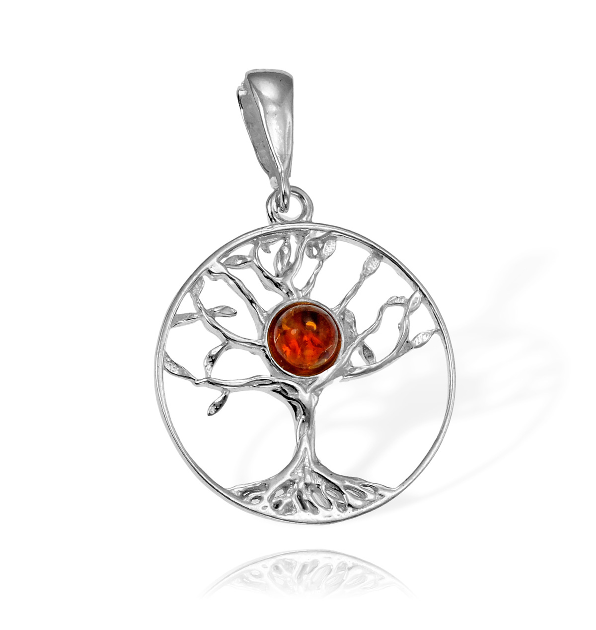 Srebrny Wisiorek Ażurowe Drzewo Drzewko z Bursztynem