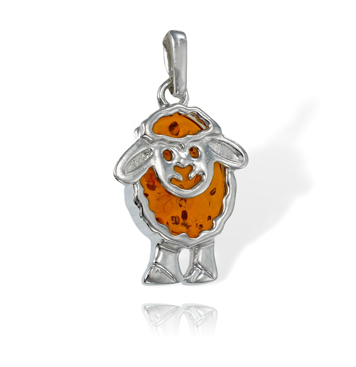 Srebrny Wisiorek Baran Baranek z Bursztynem