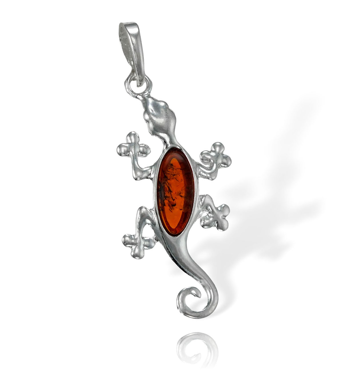 Srebrny Wisiorek Jaszczurka, Gekon z Bursztynem