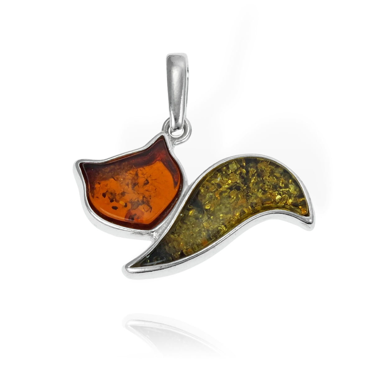 Srebrny Wisiorek Kot Kotek z Bursztynami