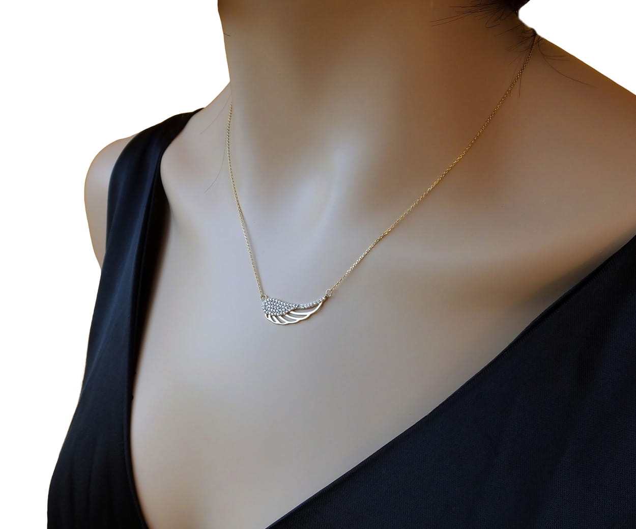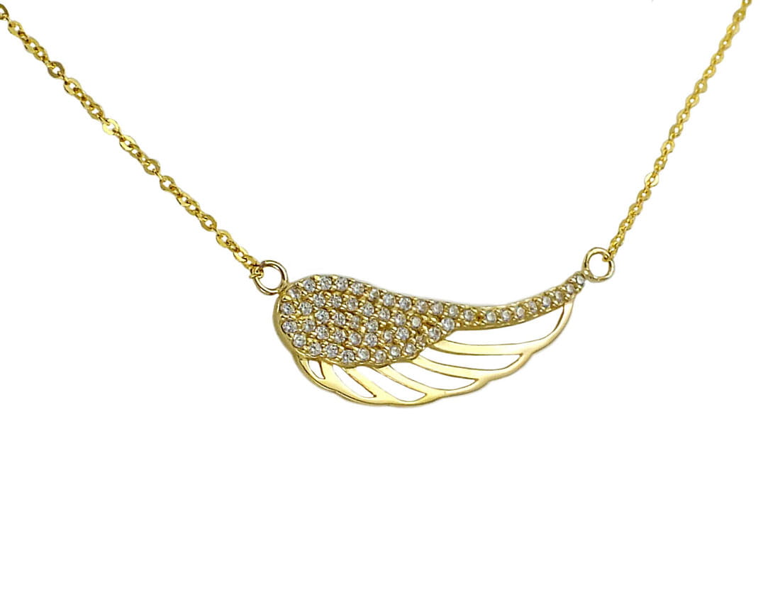 Złoty Naszyjnik Łańcuszkowy, Zdobiony Pięknym Skrzydłem z Cyrkoniami