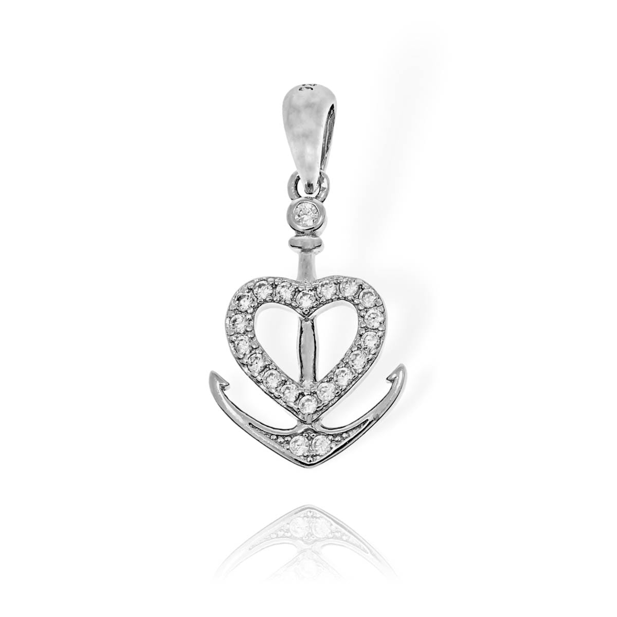 Cudowny Srebrny Wisiorek Kotwica z Sercem z Cyrkoniami