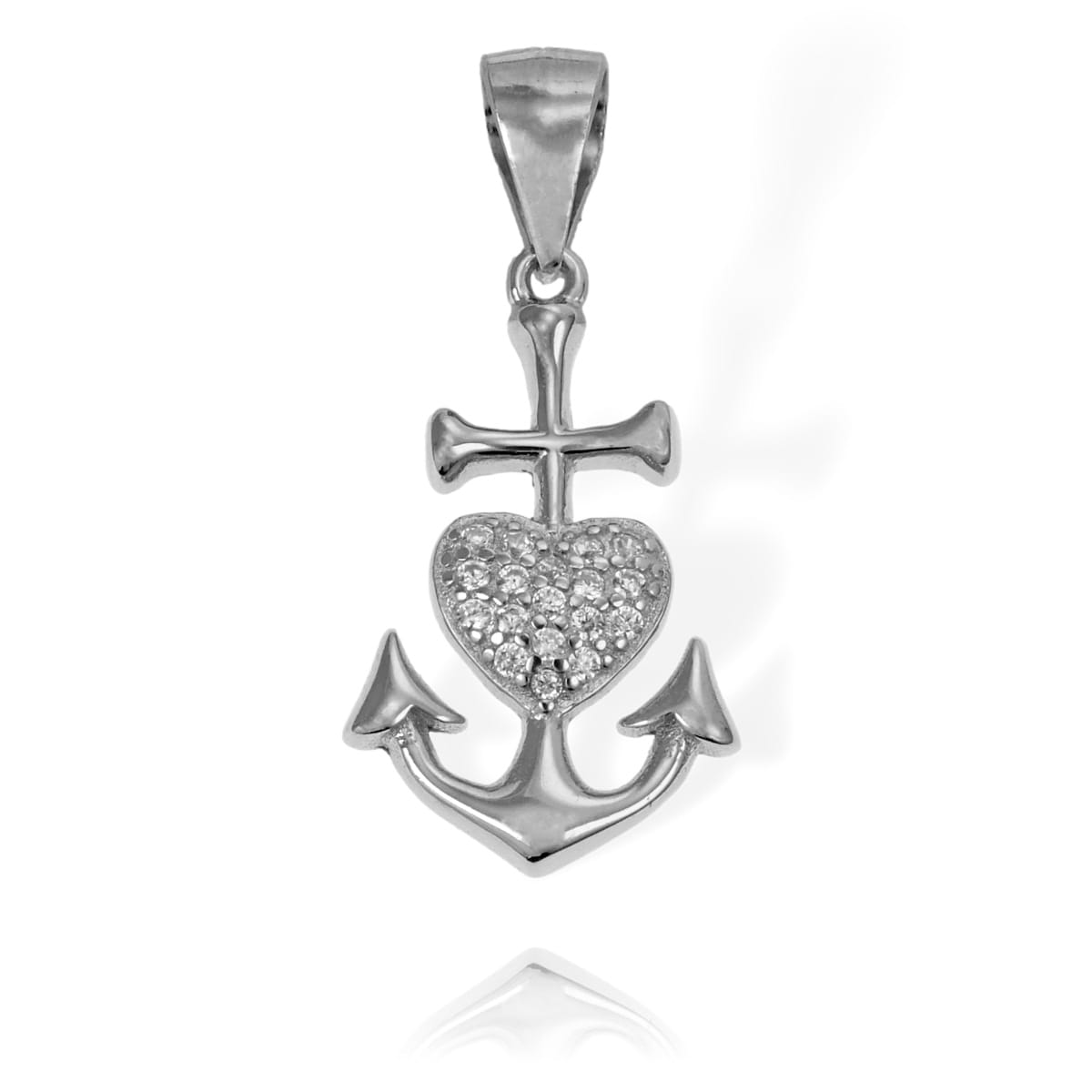 Cudowny Srebrny Wisiorek Kotwica z Sercem z Cyrkoniami