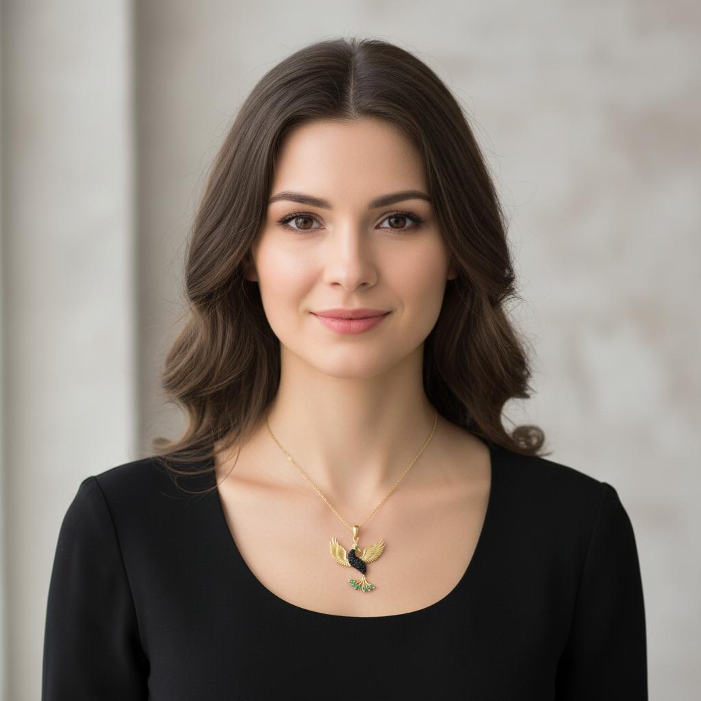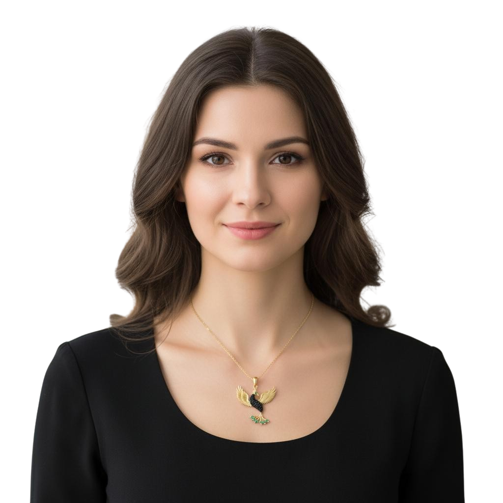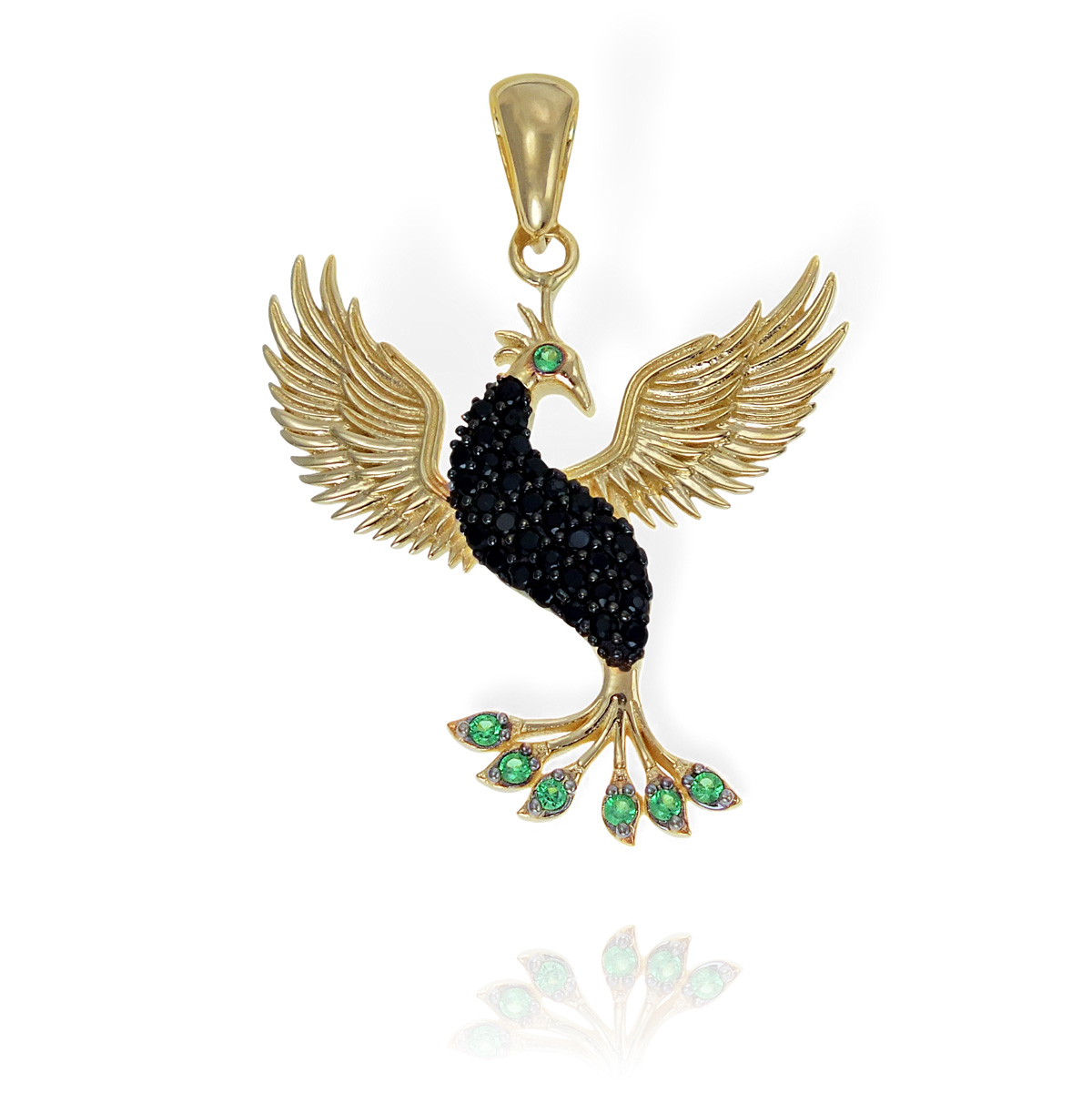 Cudny Złoty Wisiorek Ptak Feniks z Cyrkoniami