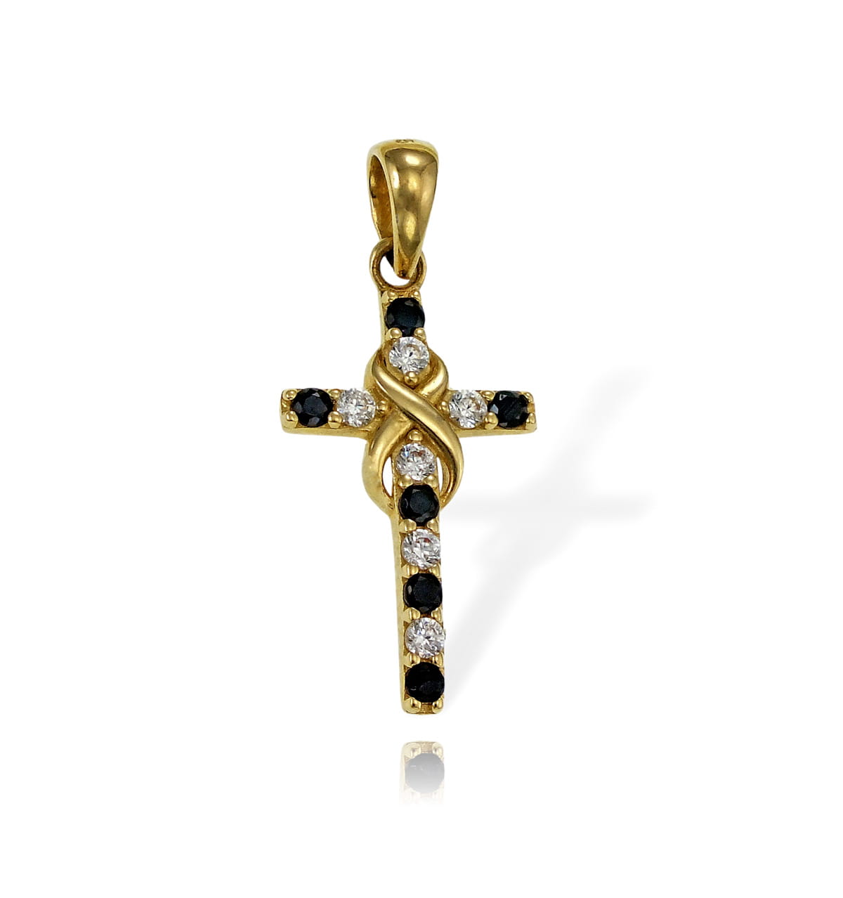 Cudowny Złoty Krzyż Krzyżyk z Cyrkoniami i Pirytem - Próba 585