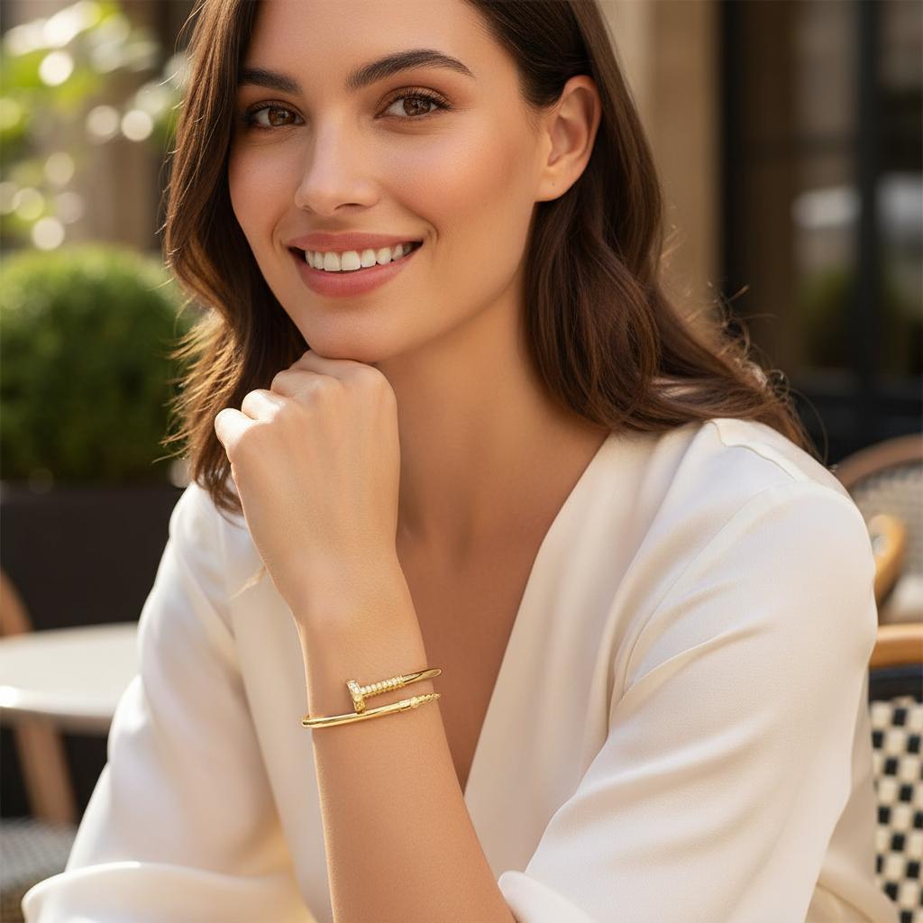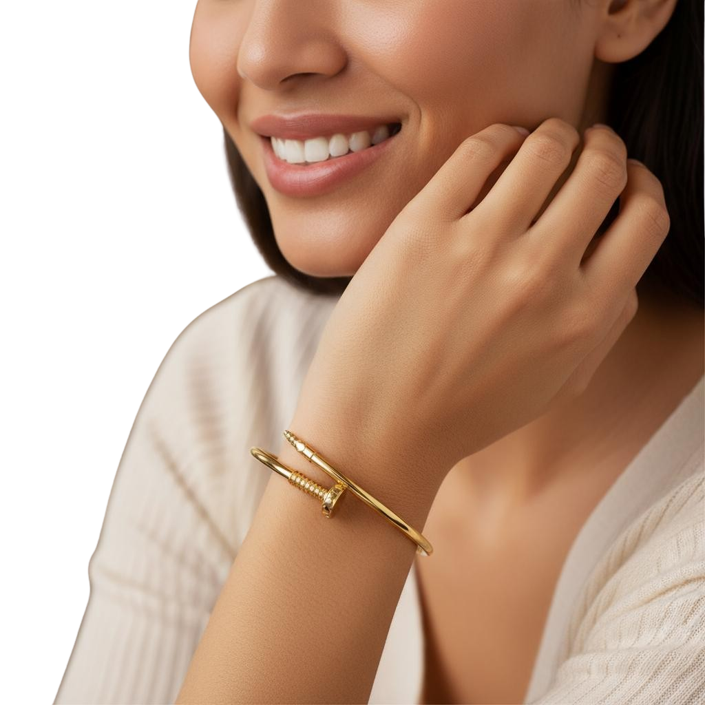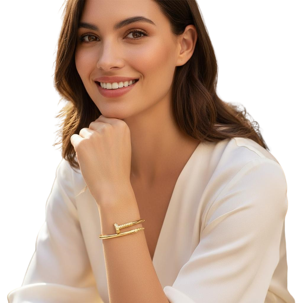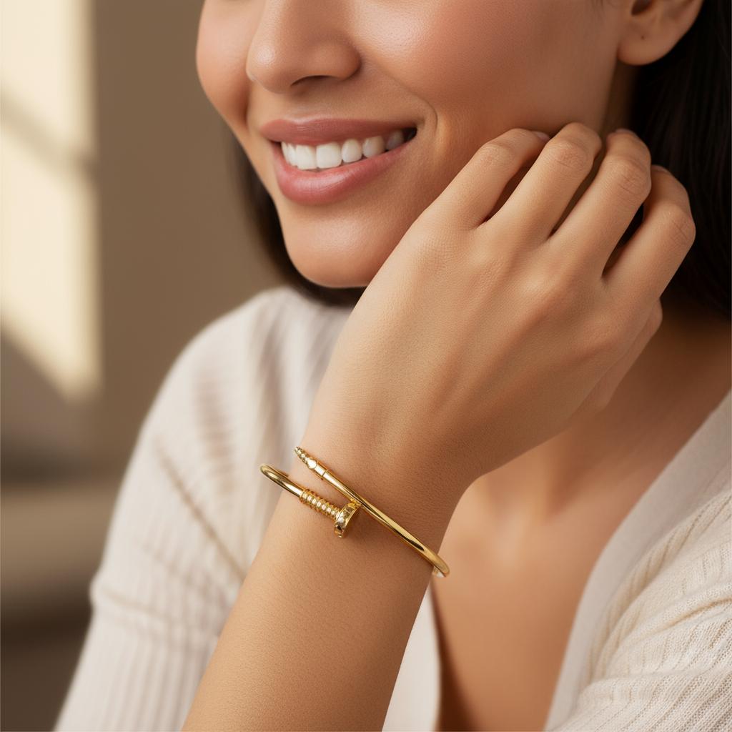 Efektowna Złota Sztywna Bransoletka Gwóźdź - Pr. 585