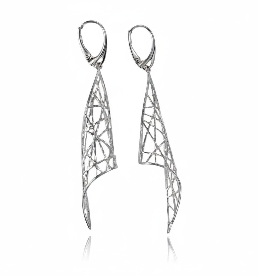 Efektowne Długie Srebrne Ażurowe Kolczyki !