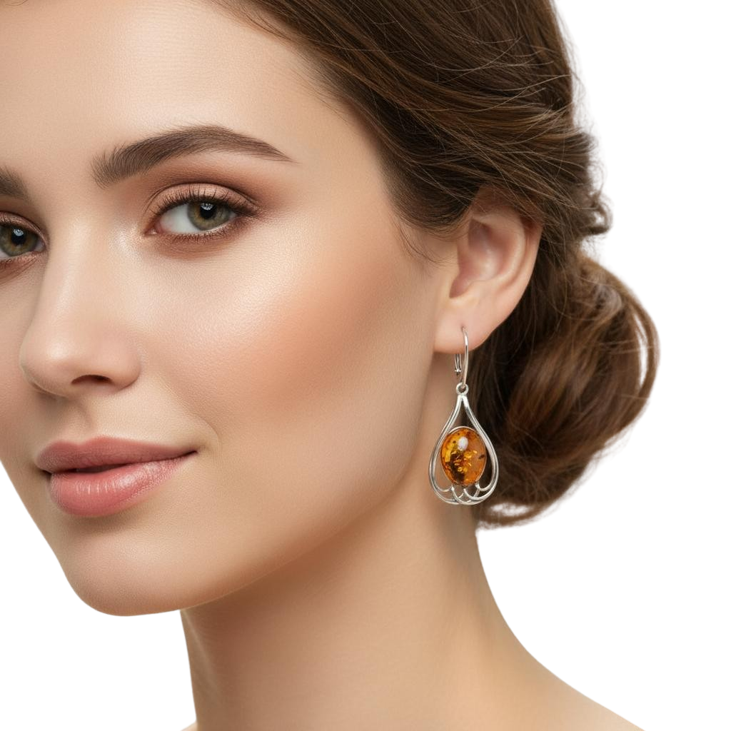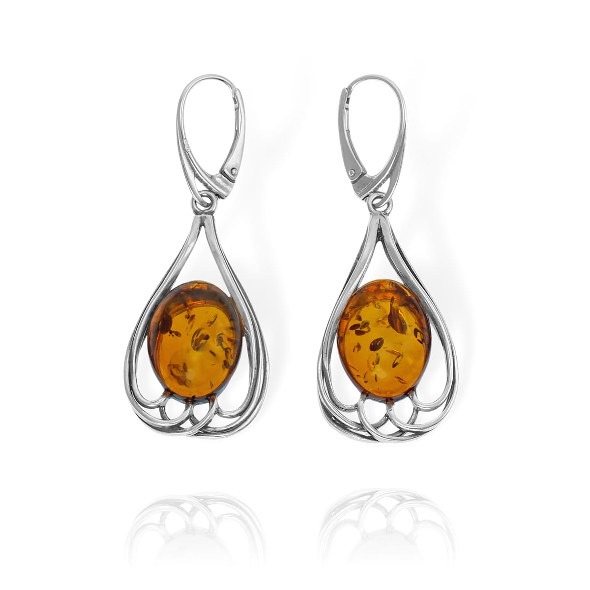 Efektowne Srebrne Kolczyki z Bursztynem Bursztynami