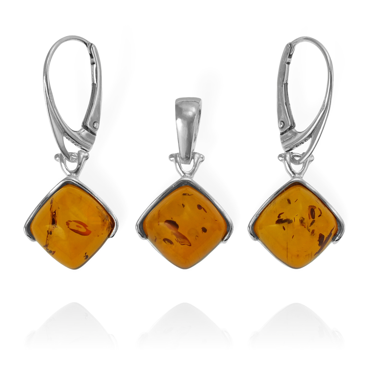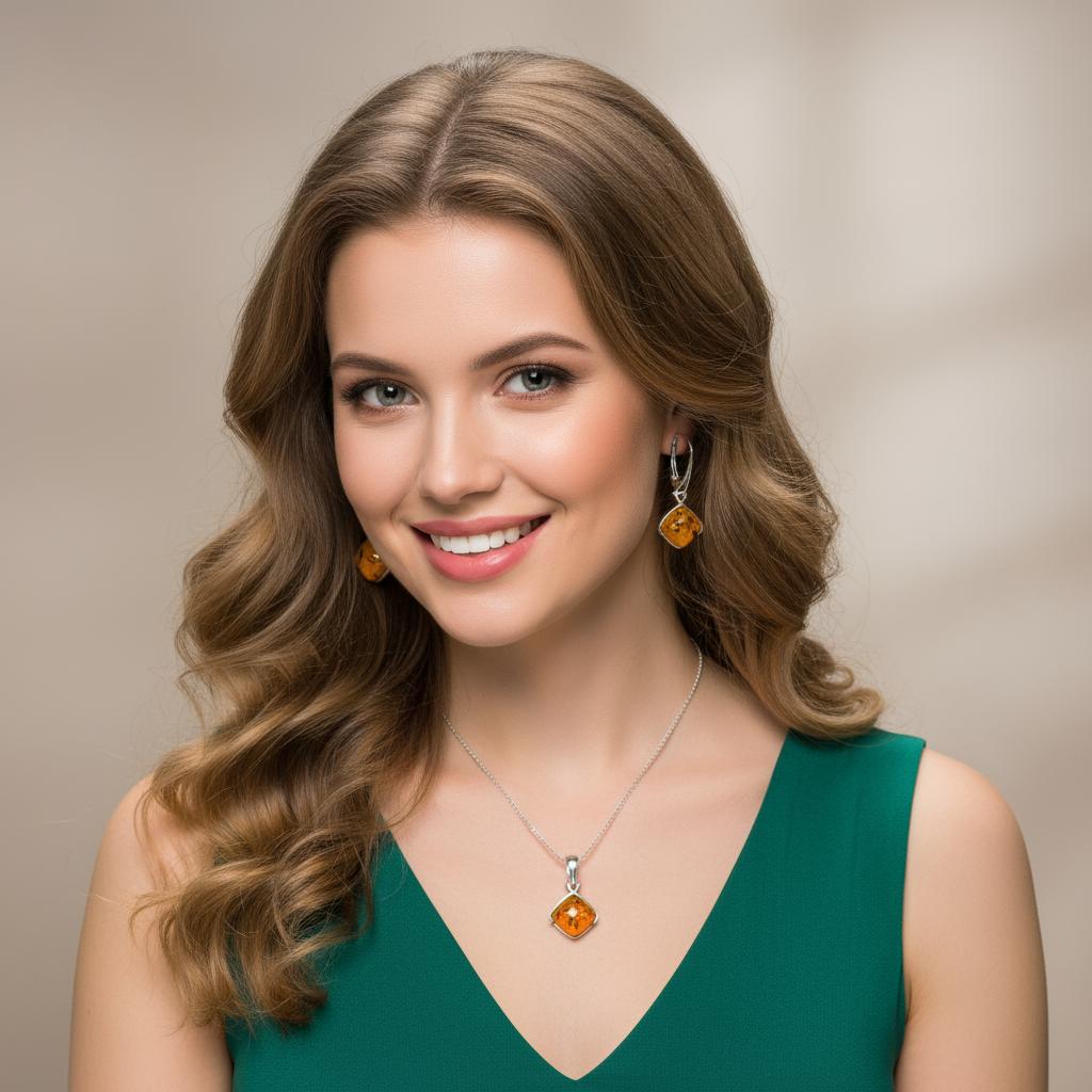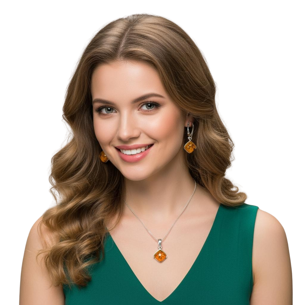 Efektowny Srebrny Komplet z Bursztynami- pr. 925