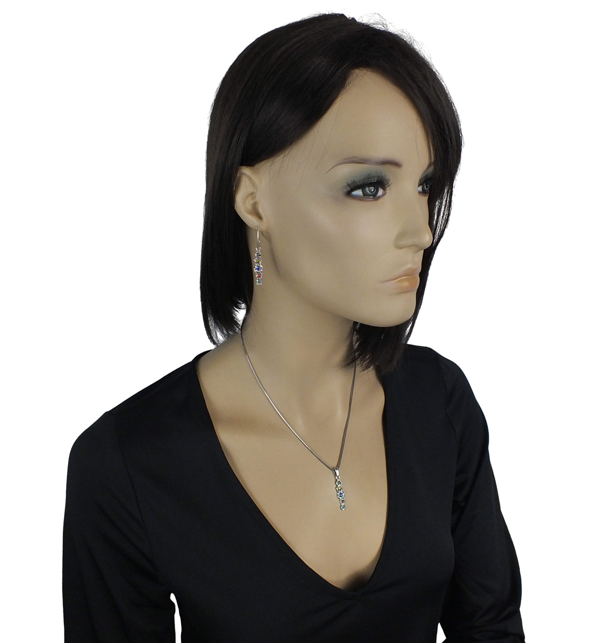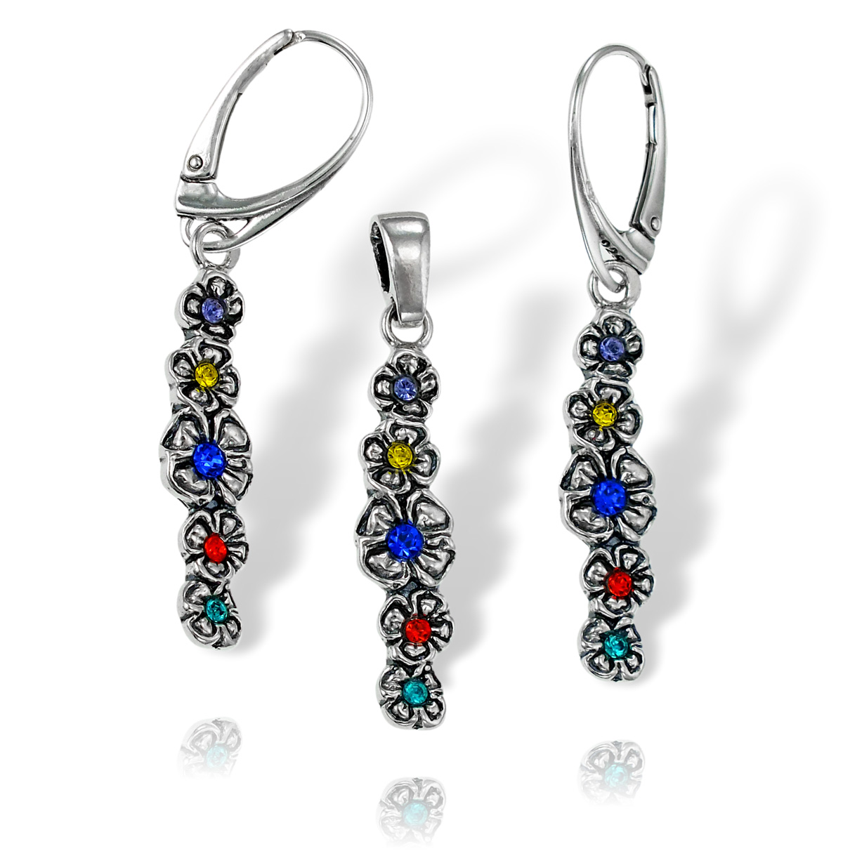 Efektowny Srebrny Komplet z Kolorowymi Cyrkoniami