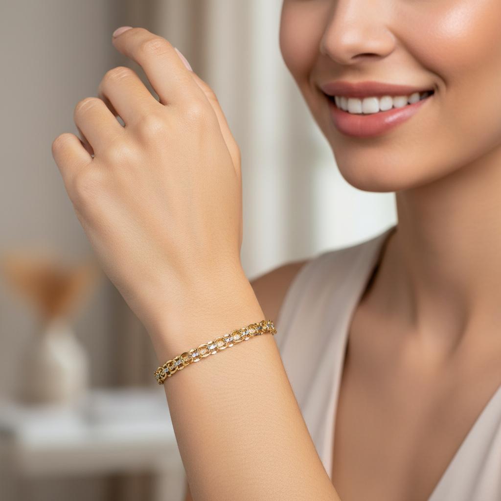 Modna Złota Diamentowana Bransoletka Bismarck - Próba 585