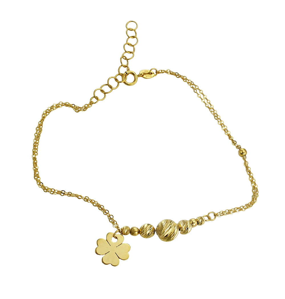 Modna Złota Fantazyjna Bransoletka z Koniczynką i Kulkami- pr.585