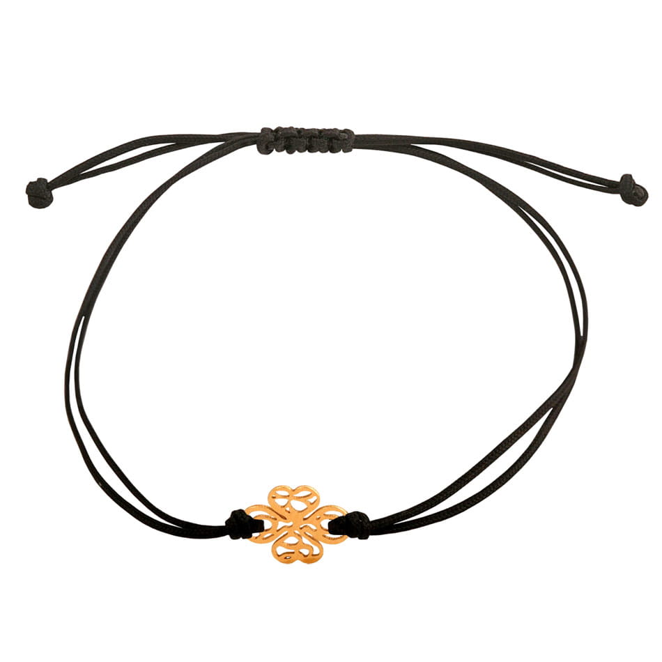 Nowoczesna Bransoletka z Ażurową Koniczynką na Czarnym Sznureczku !!!