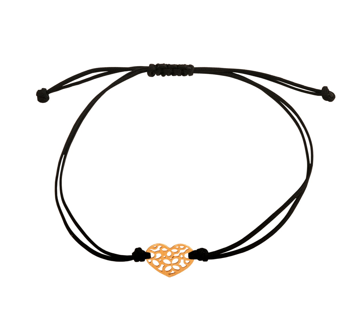 Nowoczesna Bransoletka z Ażurowym Serduszkiem na Czarnym Sznureczku !