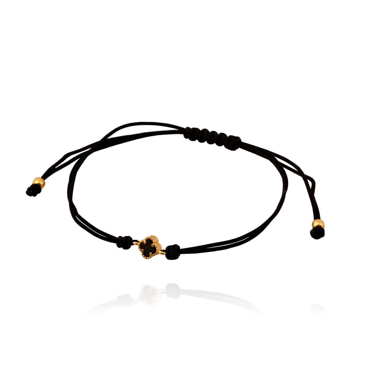 Nowoczesna Bransoletka z Modną Koniczynką na Czarnym Sznureczku