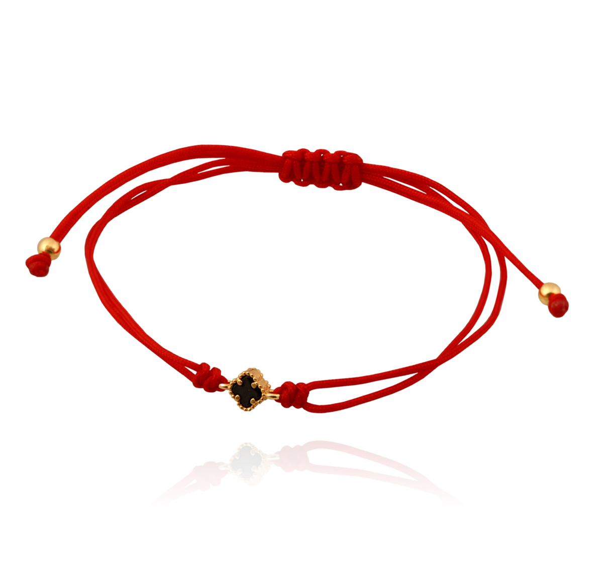 Nowoczesna Bransoletka z Modną Koniczynką na Czerwonym Sznureczku