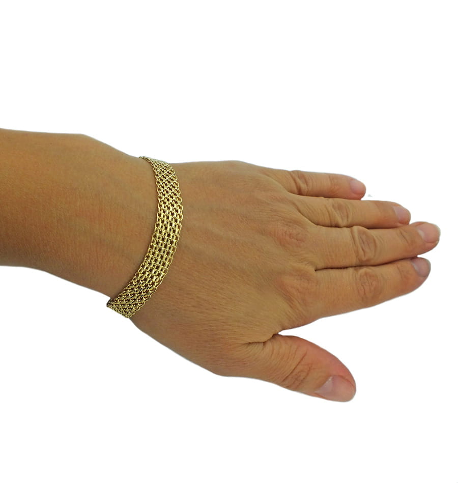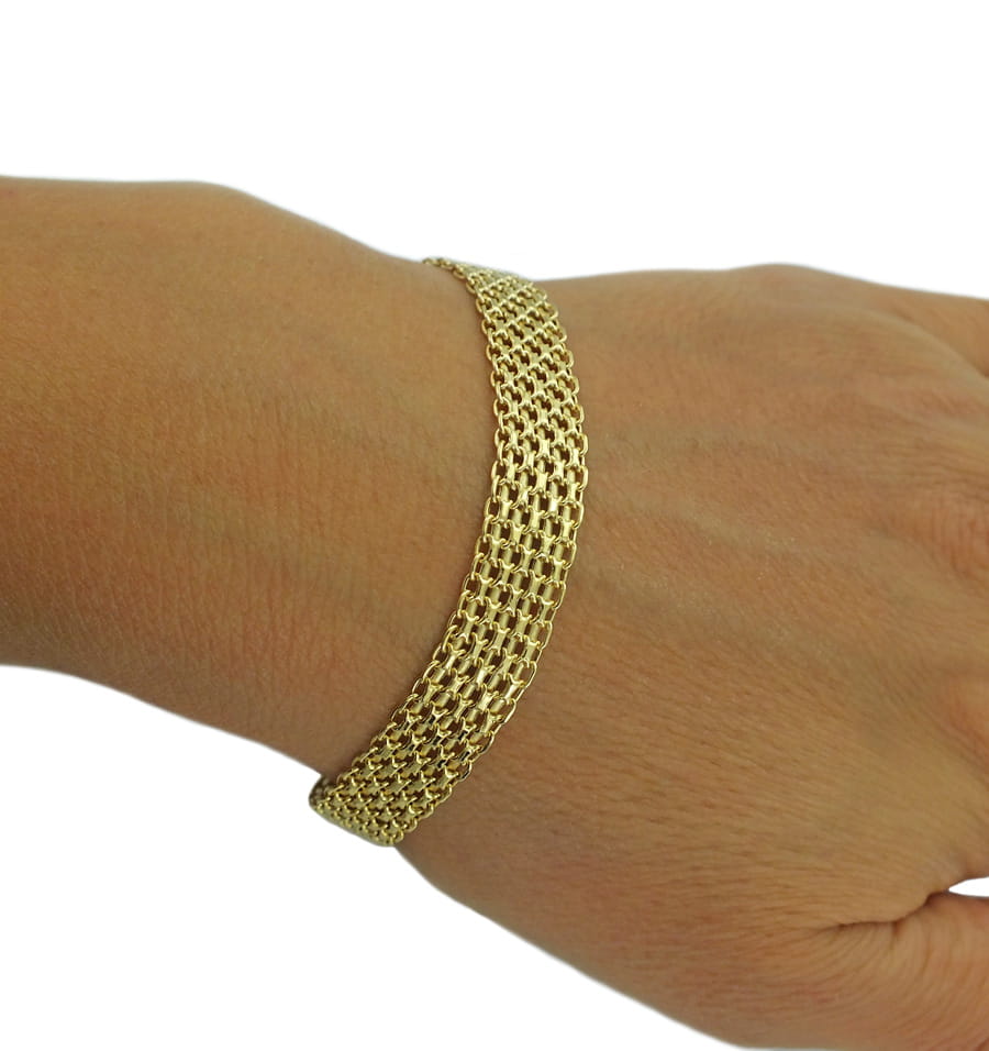 Piękna Modna Złota Szeroka Bransoletka Bismarck- Próba 585