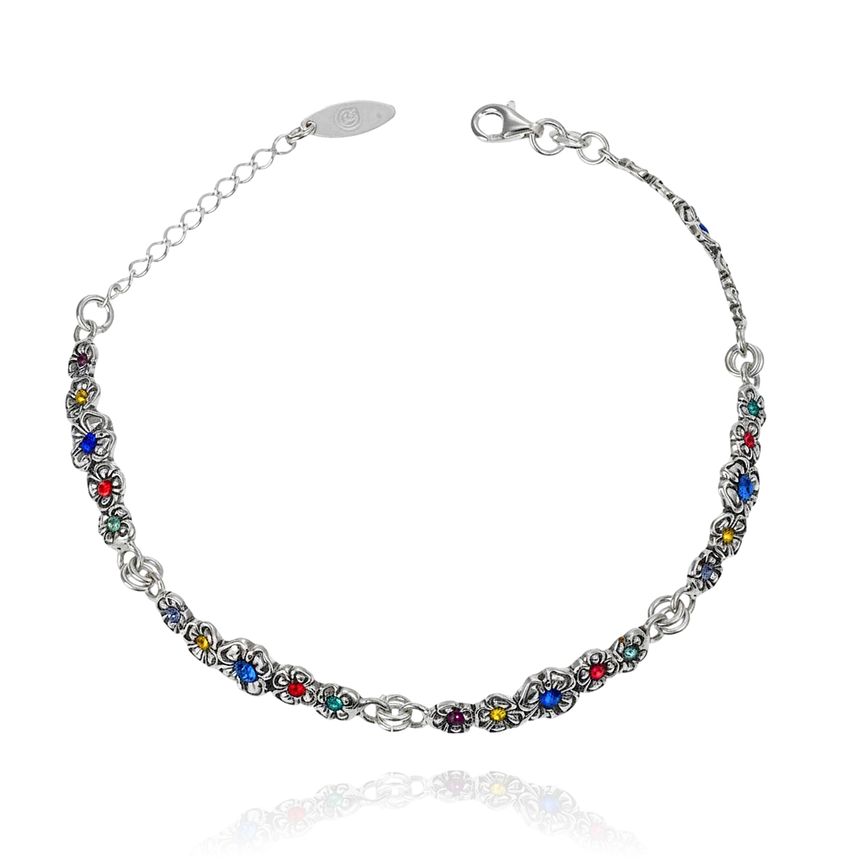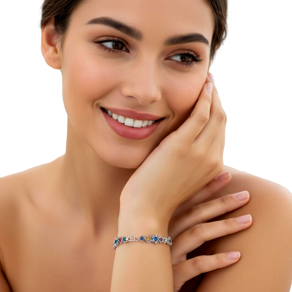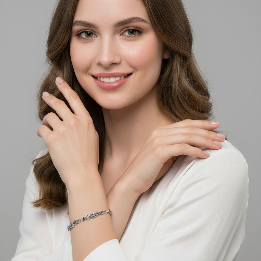 Piękna Srebrna Bransoletka Kwiatki Kwiatuszki z Cyrkoniami !