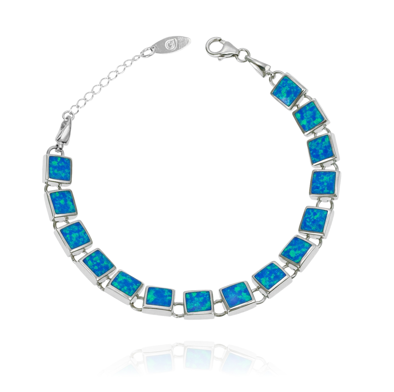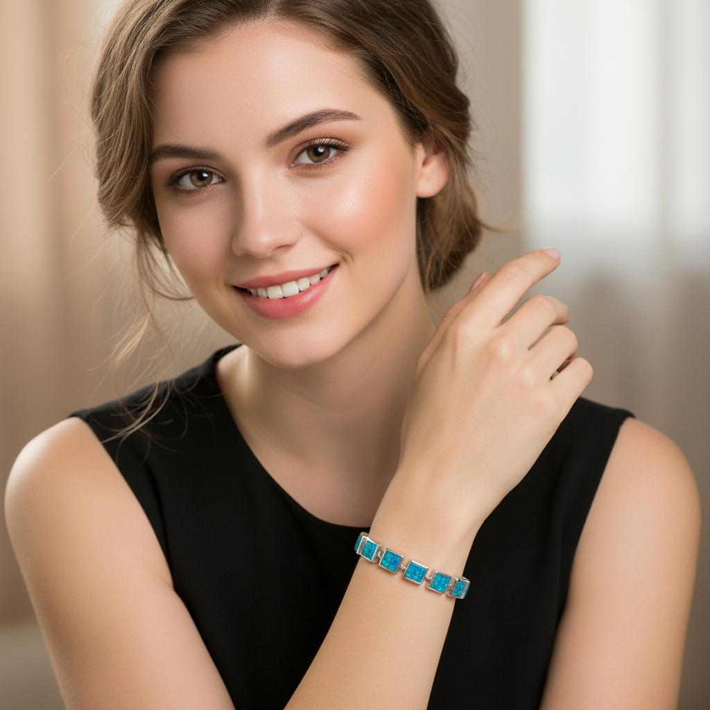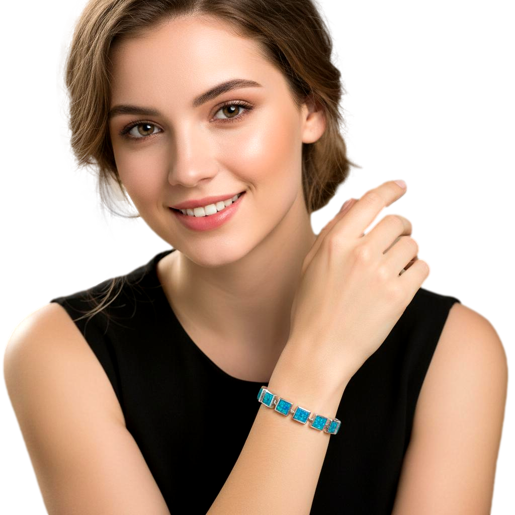 Piękna Srebrna Bransoletka z Błękitnym Opalem