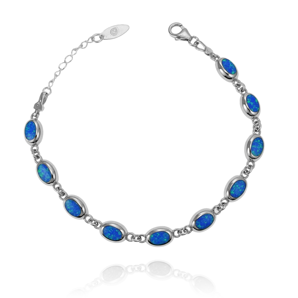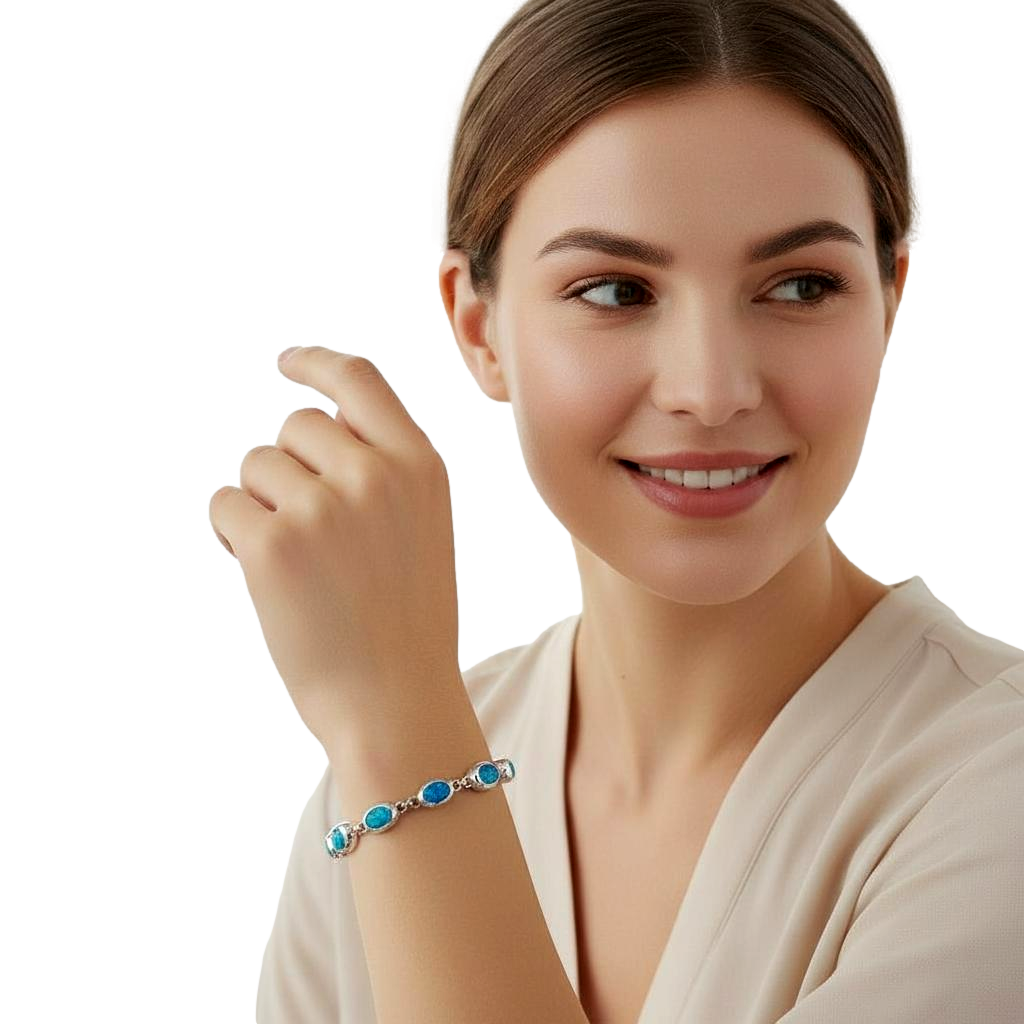 Piękna Srebrna Bransoletka z Błękitnym Opalem