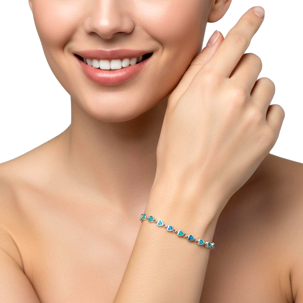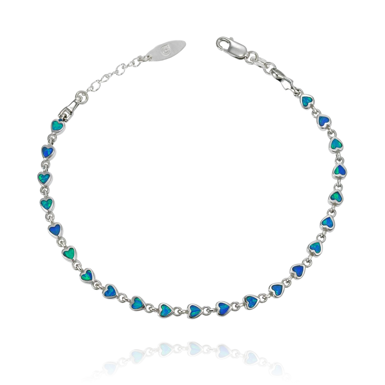 Piękna Srebrna Bransoletka z Serduszkami z Opalem