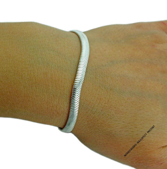 Piękna Srebrna Gustowna Rodowana Bransoletka Żmijka Płaska !!!