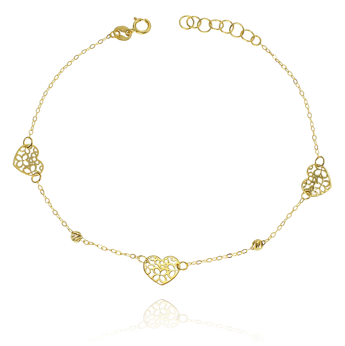 Piękna Złota Bransoletka Ażurowe Serca
