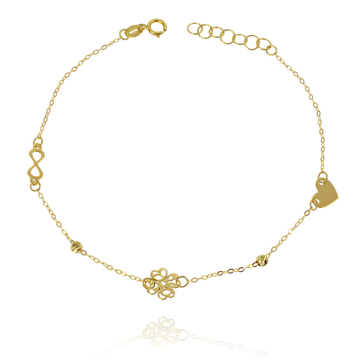 Piękna Złota Bransoletka Serce Koniczyna Nieskończoność