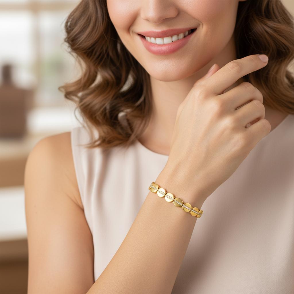 Piękna Złota Bransoletka z Cyrkoniami - pr. 585