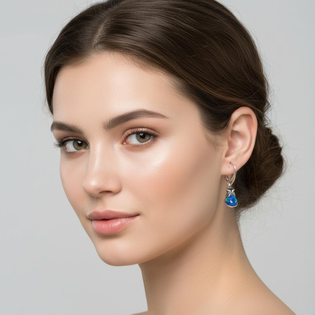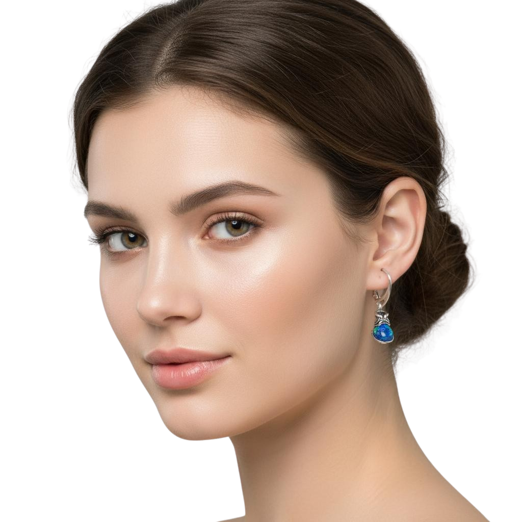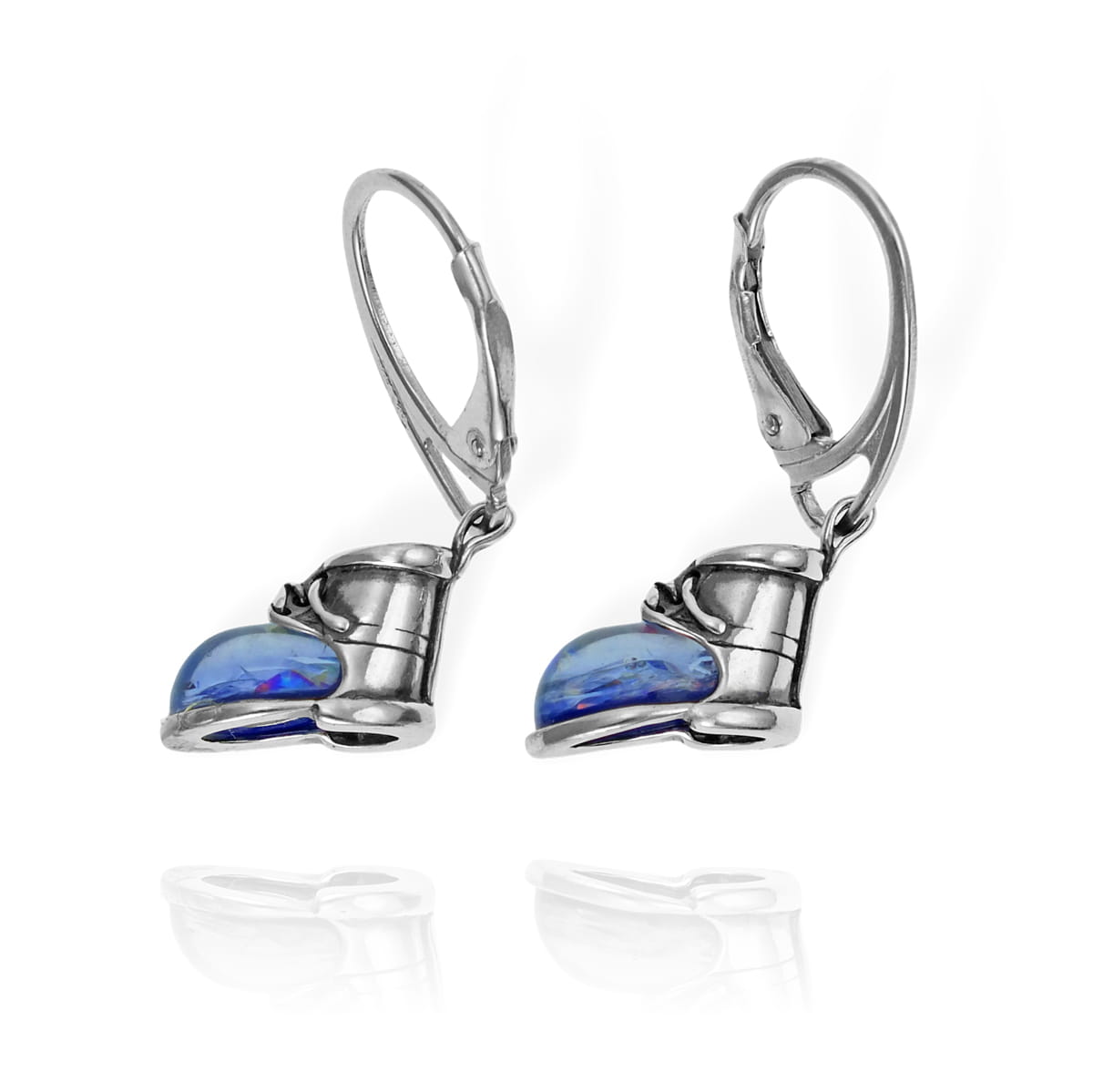 Piękne Srebrne Kolczyki Buty z Opalem