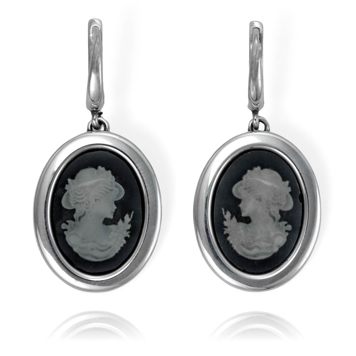 Piękne Srebrne Kolczyki Kamea Rzeźbiona w Masie Perłowej !
