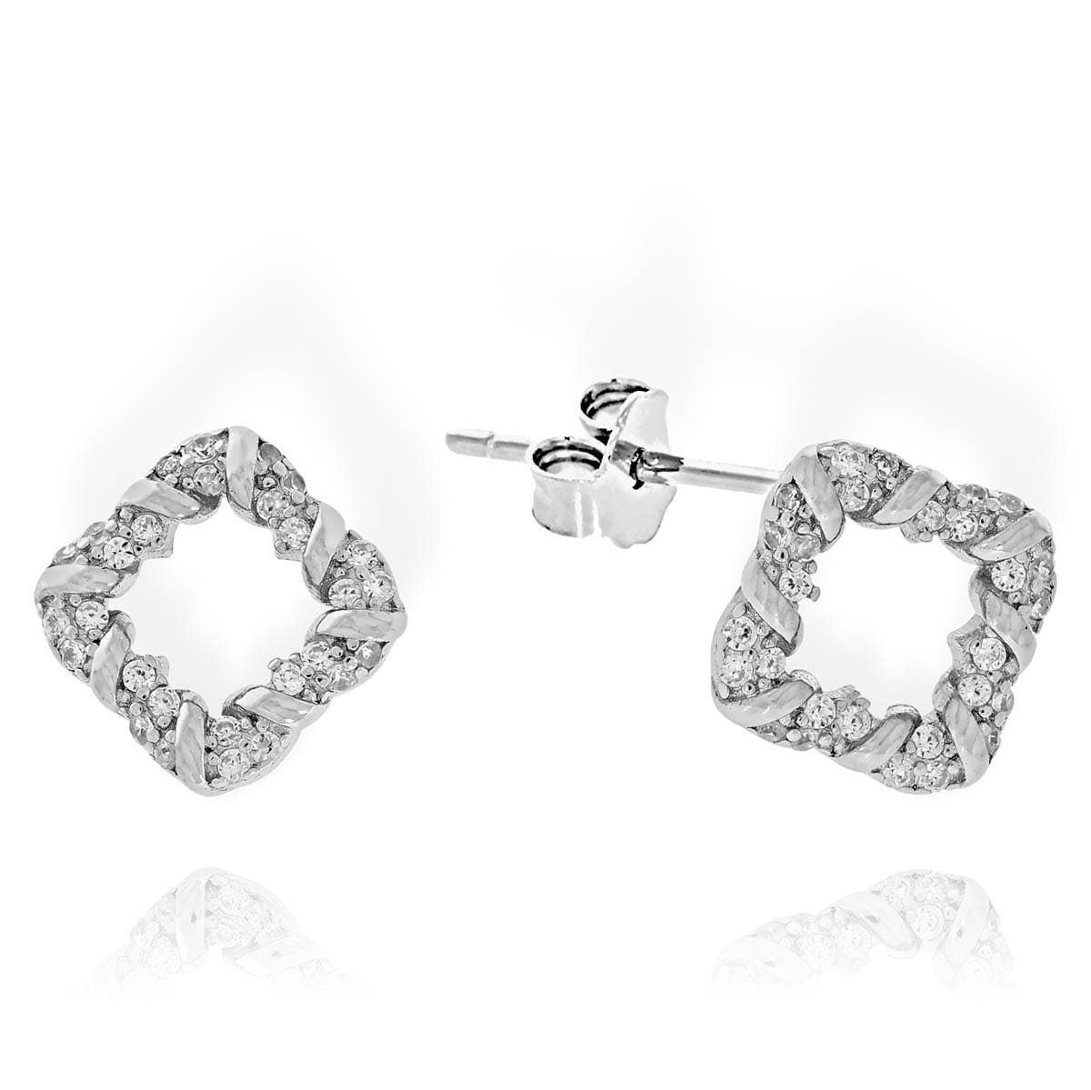 Fantazyjne Srebrne Kolczyki Kwadraty z Cyrkoniami !