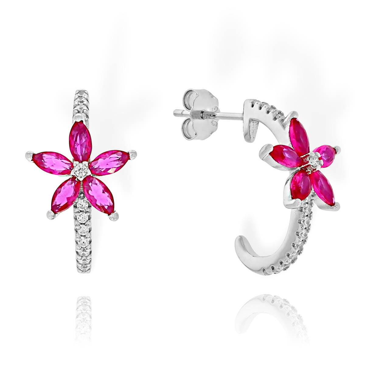 Piękne Srebrne Kolczyki Kwiatuszki z Różowymi Cyrkoniami!