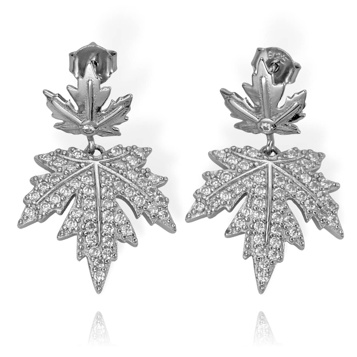 Piękne Srebrne Kolczyki Liście Klonu z Cyrkoniami