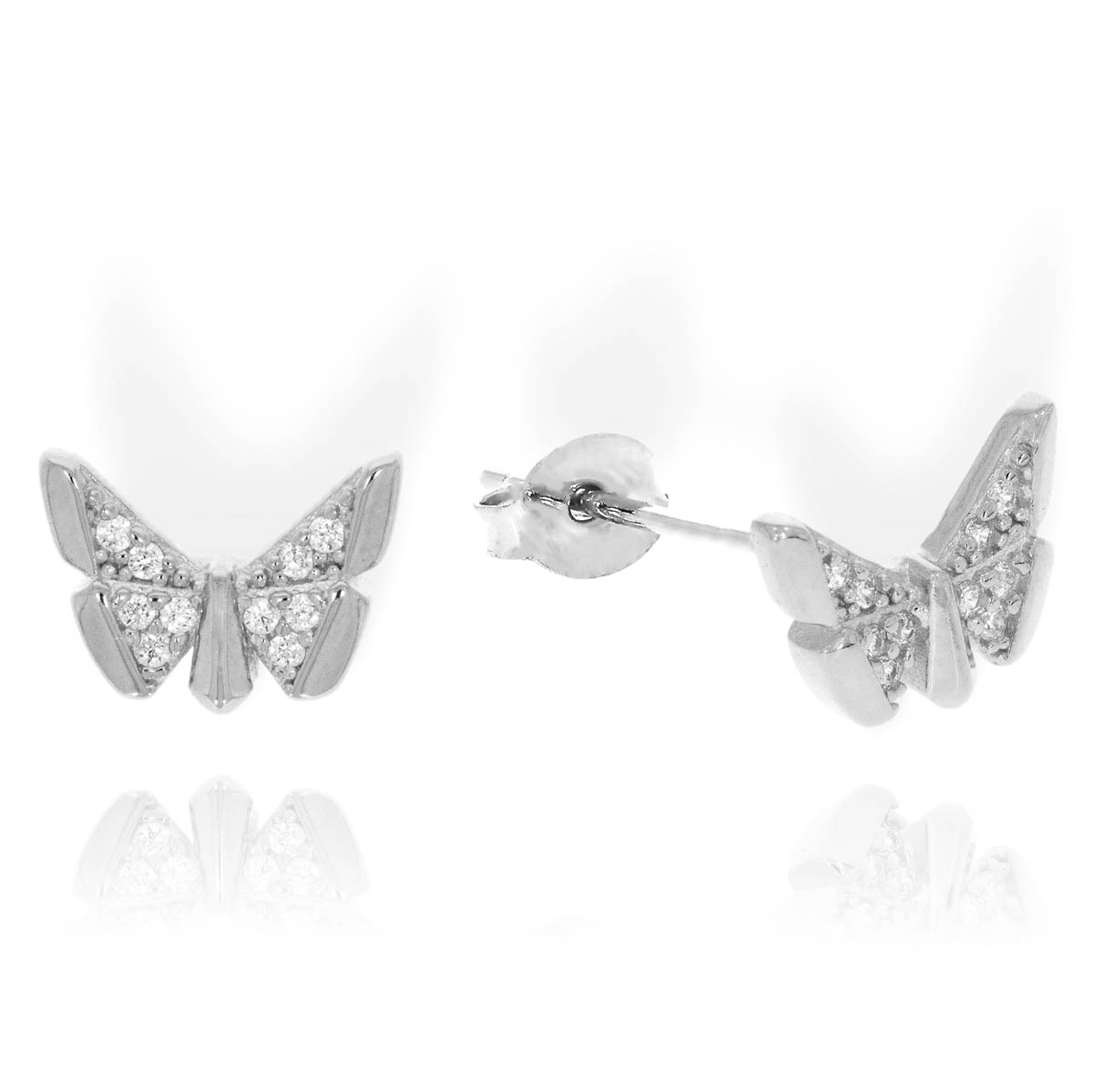 Piękne Srebrne Kolczyki Motylki z Cyrkoniami!
