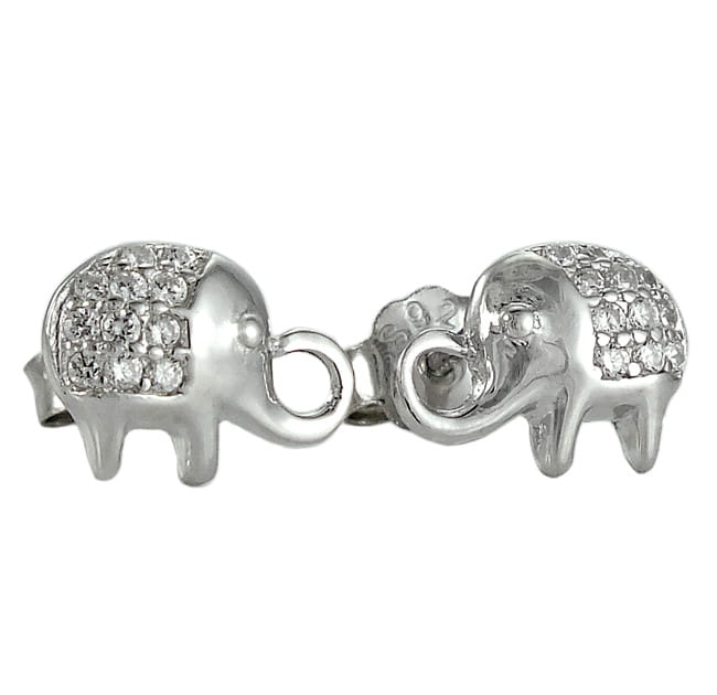 Piękne Srebrne Kolczyki Rodowane Słoniki z Cyrkoniami !!!