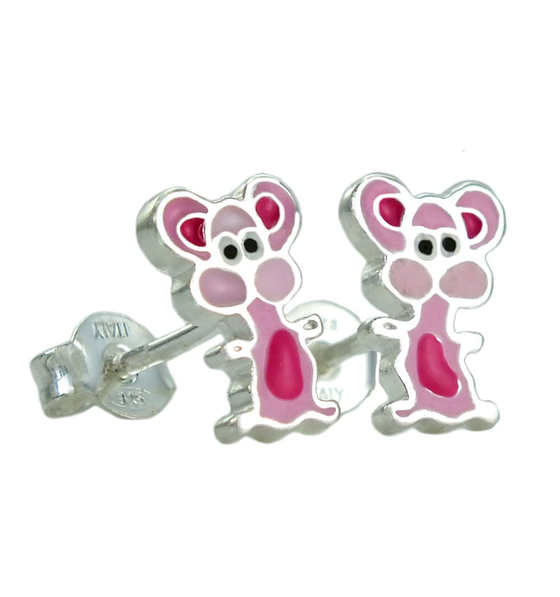 Piękne Srebrne Kolczyki Różowe Myszki !!!