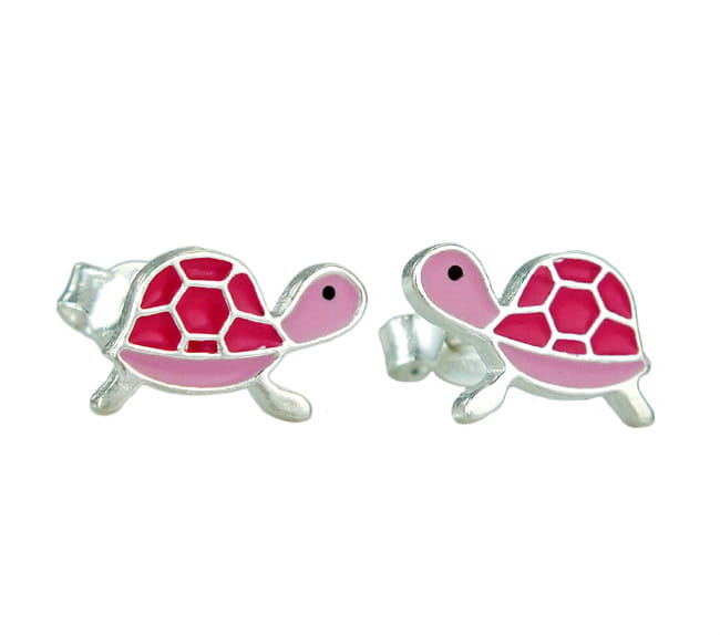 Piękne Srebrne Kolczyki Różowe Żółwiki,Żółwie !