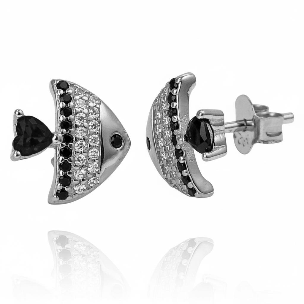 Piękne Srebrne Kolczyki Rybki z Cyrkoniami !