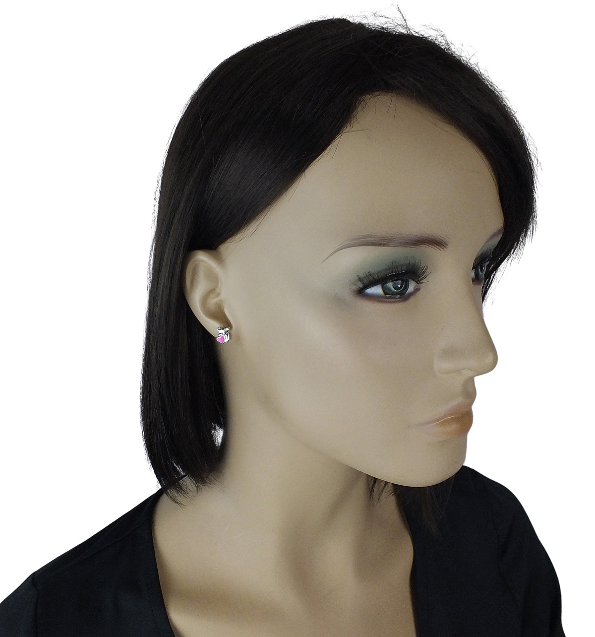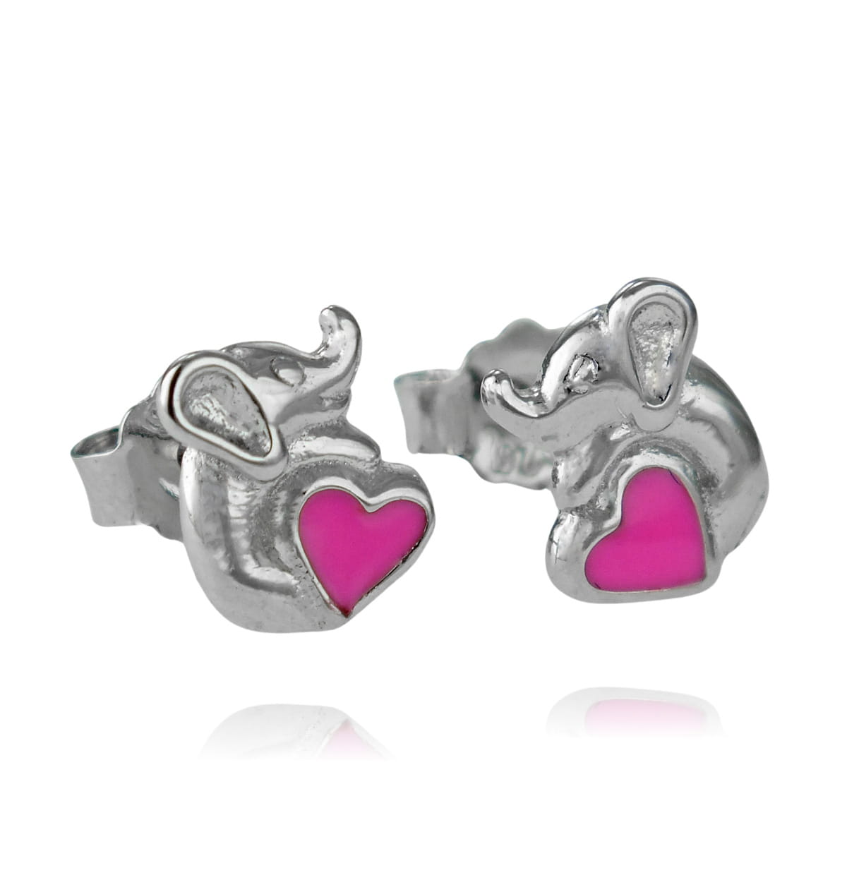 Piękne Srebrne Rodowane Kolczyki Słoniki z Różowym Sercem !