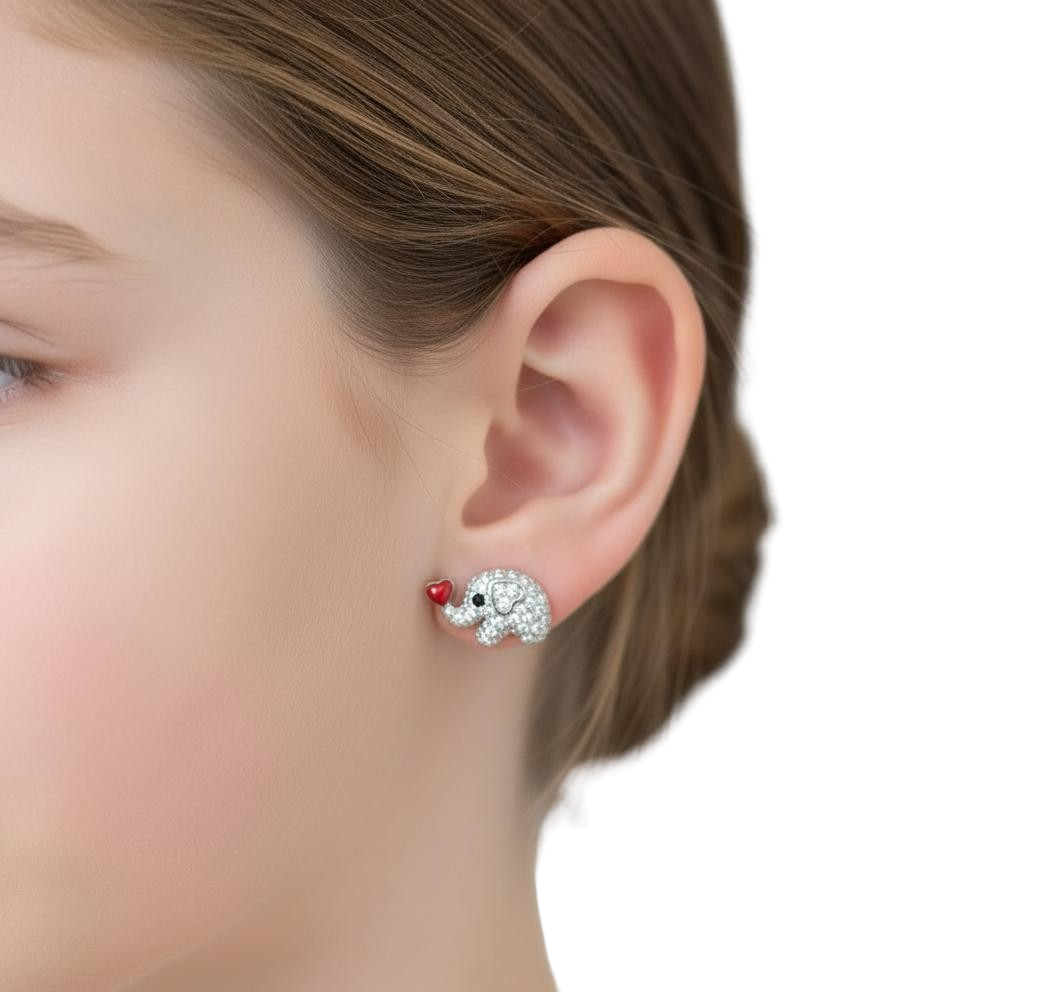 Piękne Srebrne Kolczyki Słonik z Sercem i z Cyrkoniami !