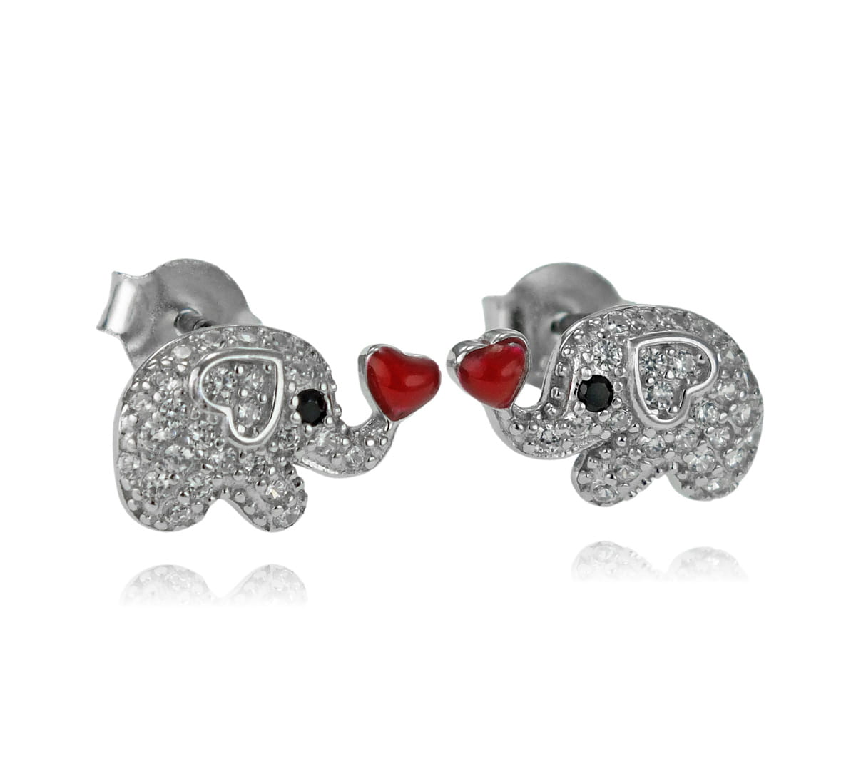 Piękne Srebrne Rodowane Kolczyki Słoniki z Sercem i z Cyrkoniami !