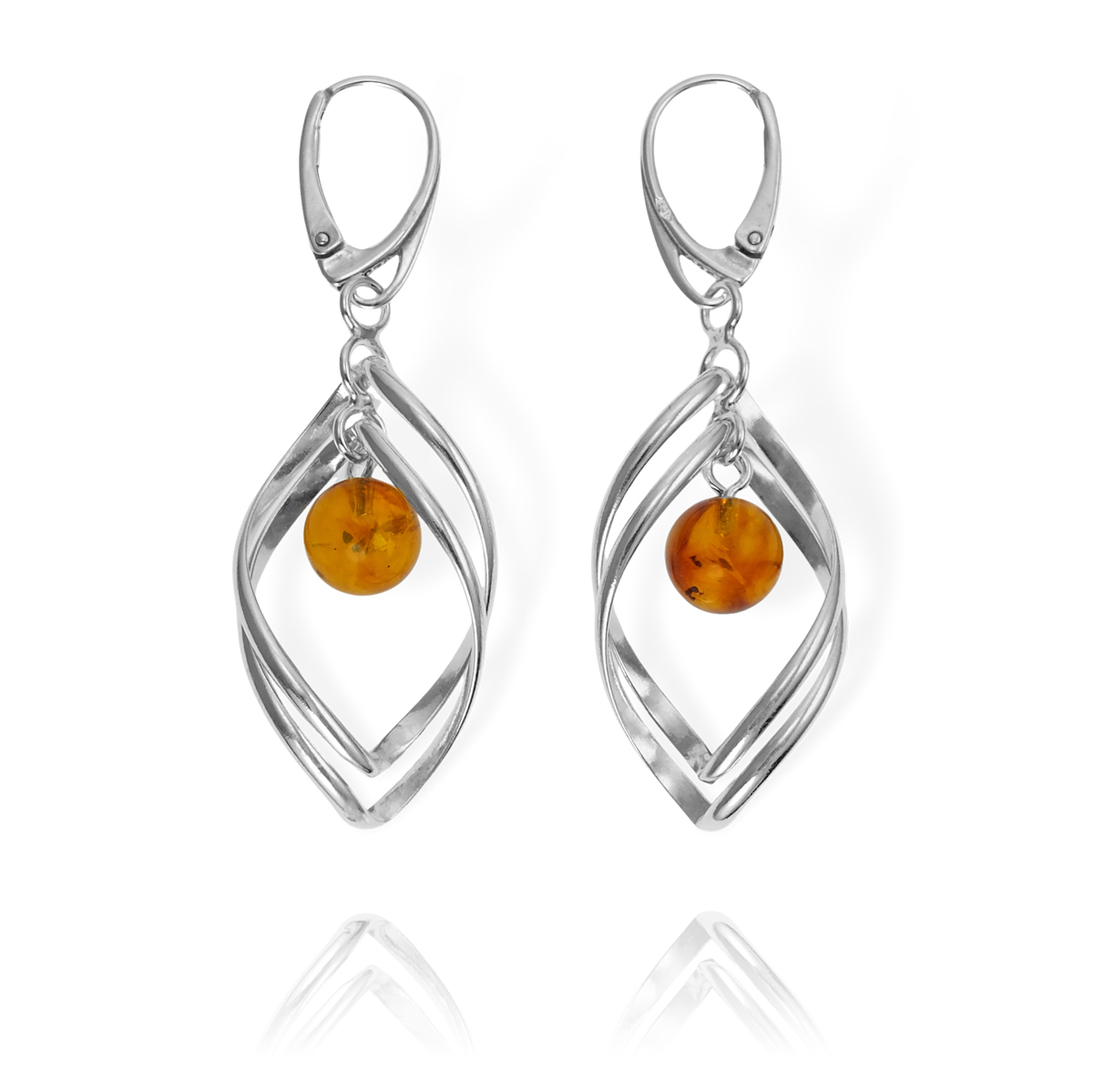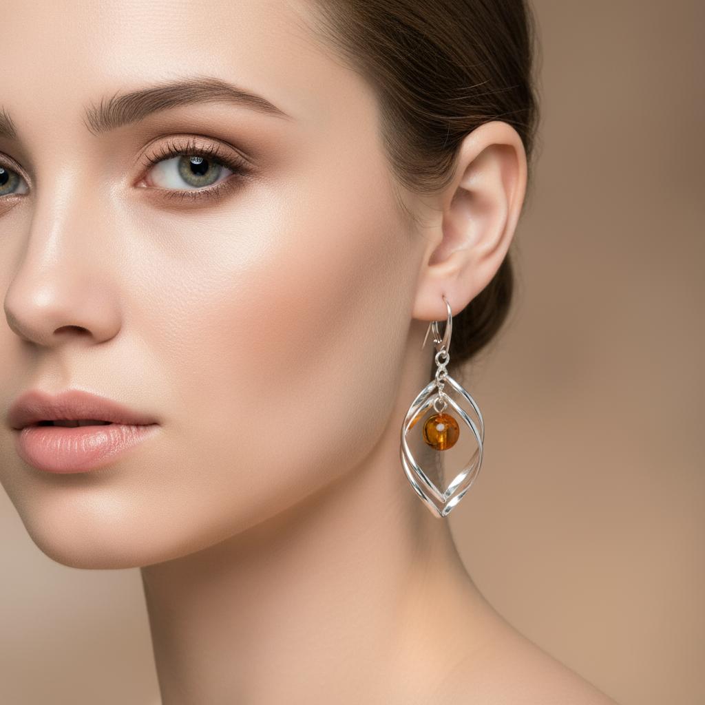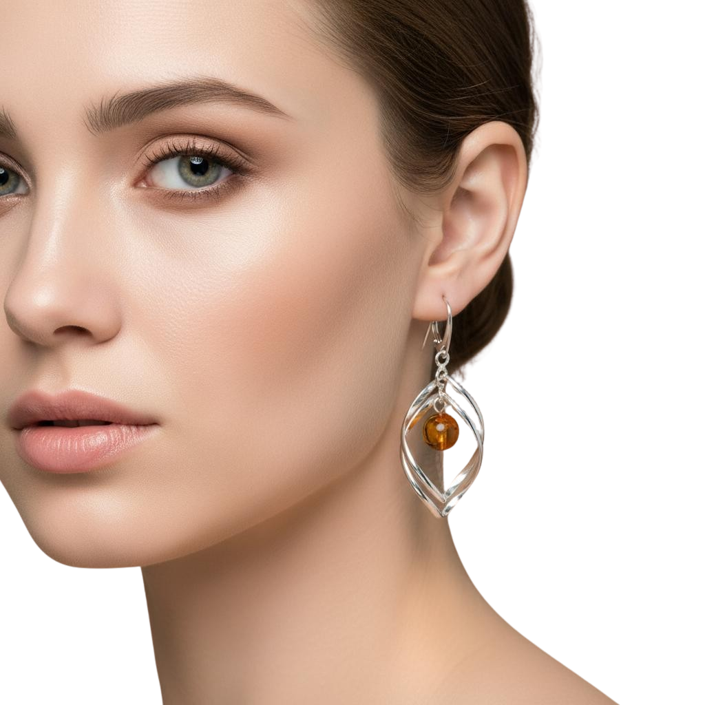 Piękne Srebrne Kolczyki z Bursztynem Bursztynami