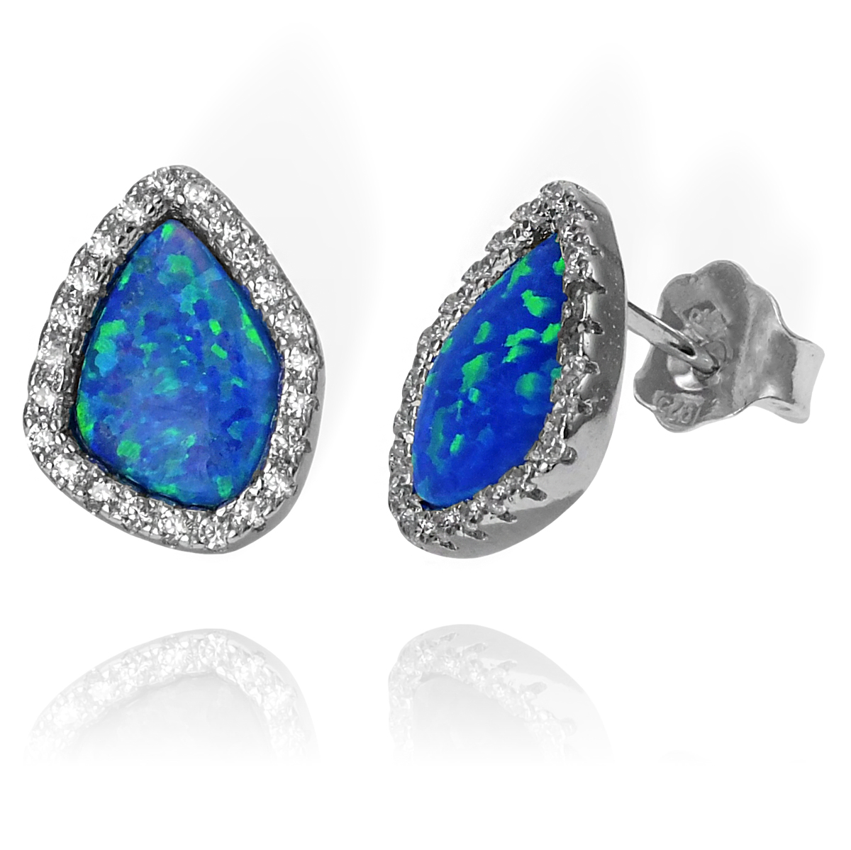 Piękne Srebrne Kolczyki z Opalem i Cyrkoniami